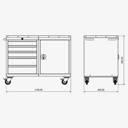 - 2 adet 150’lik çekmece (iç ölçü: H120xW465xD470mm)