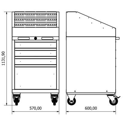 - 1 adet 300’lük çekmece (iç ölçü: H170xW400xD480mm)