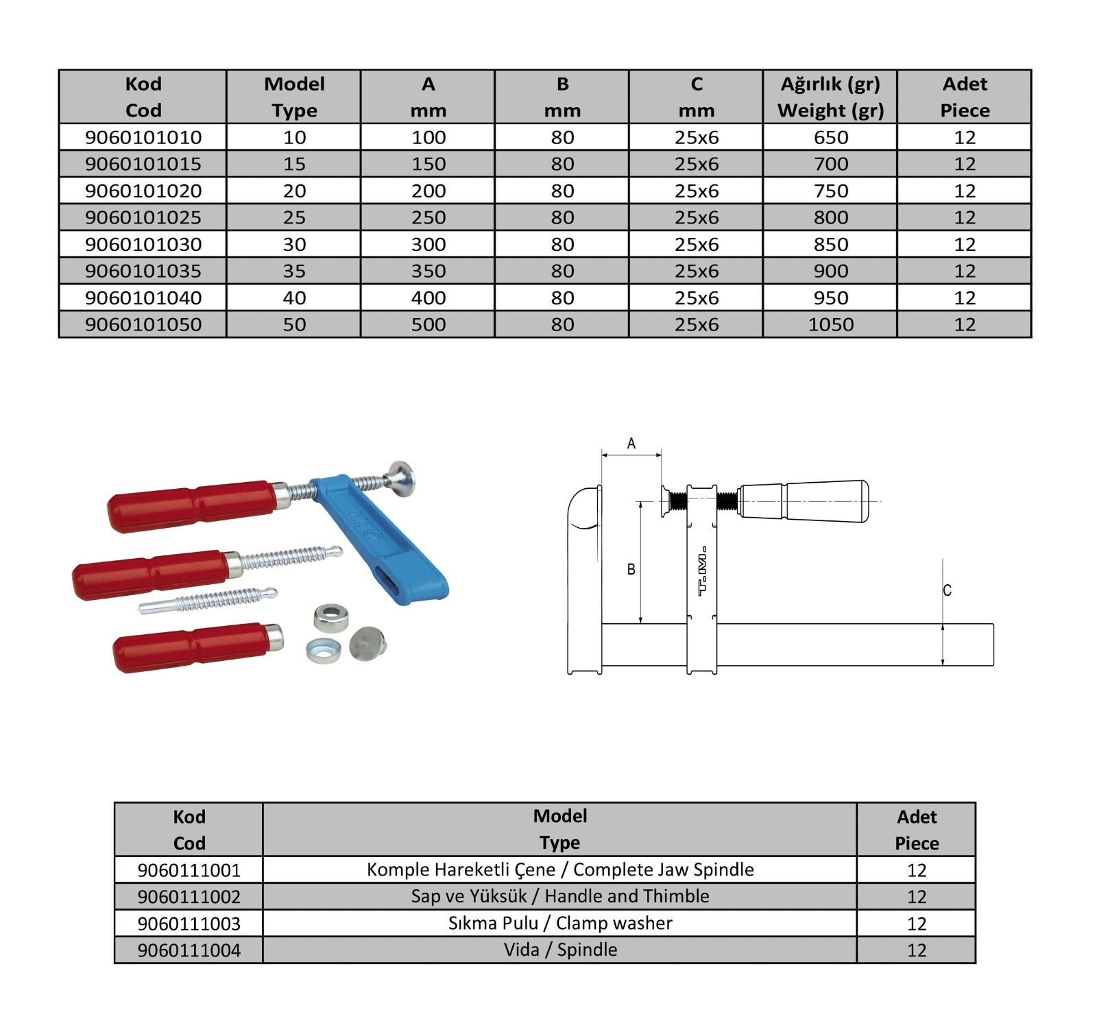 Ahşap ve metal parçaları geçici olarak güçlü şekilde sabitlemek için kullanılır.