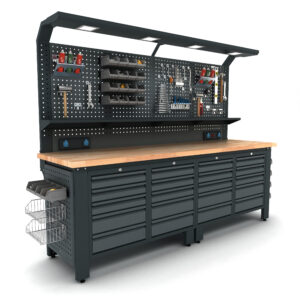 Bütün çekmece ve kapaklar kilitlenebilir özelliktedir. Ağır malzemelerin depolanacağı çekmecelerde teleskopik ray kullanılmıştır ve çekmecelerin sağlamlığı arttırılmıştır.