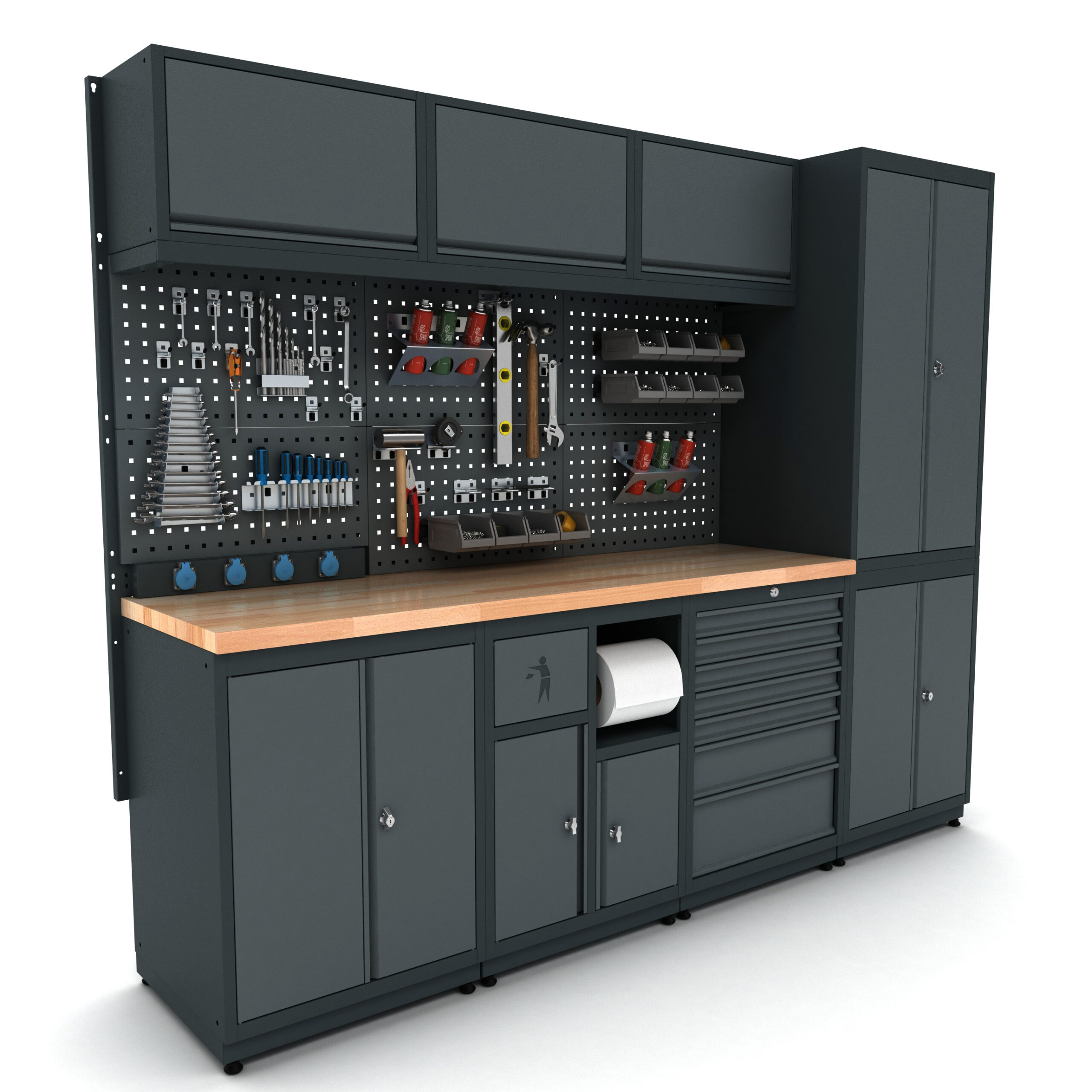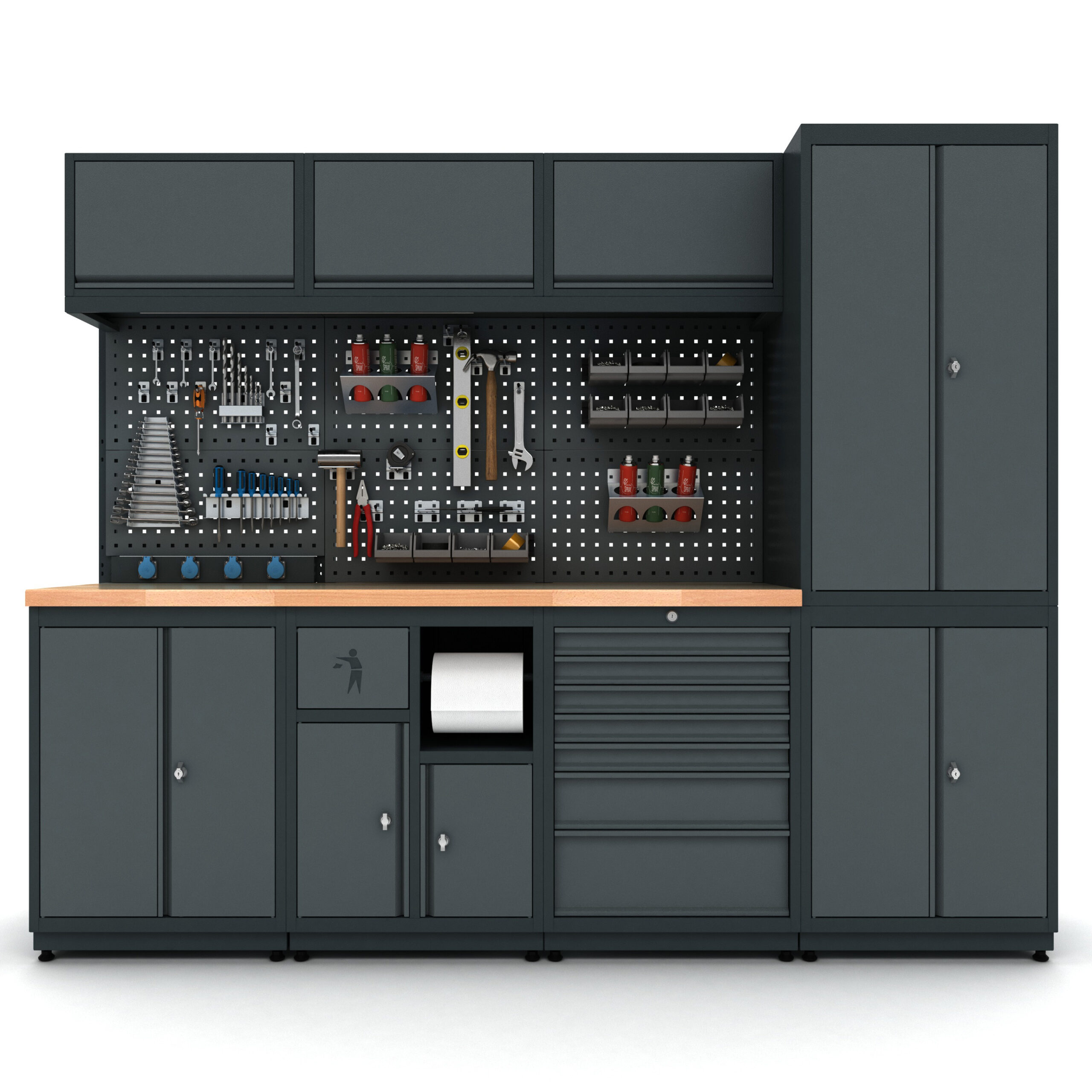 Bütün çekmece ve kapaklar kilitlenebilir özelliktedir. Ağır malzemelerin depolanacağı çekmecelerde teleskopik ray kullanılmıştır ve çekmecelerin sağlamlığı arttırılmıştır.