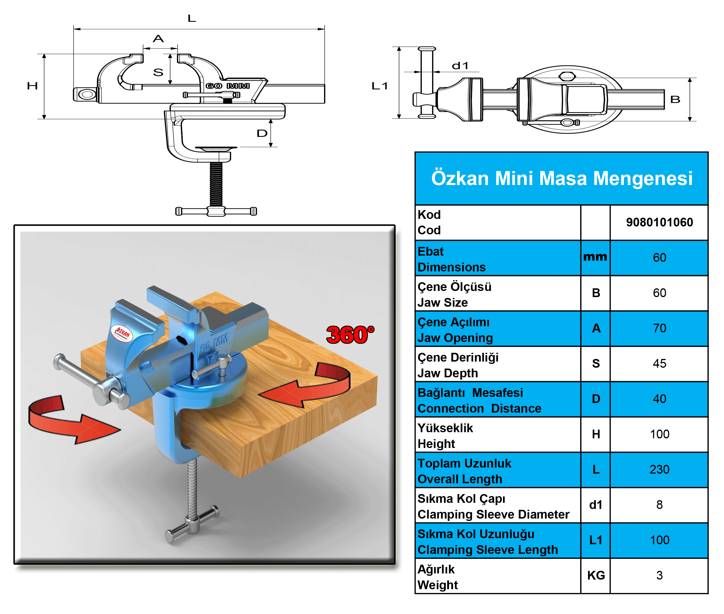 •Değiştirilebilir çene plakası (bazı modellerde)