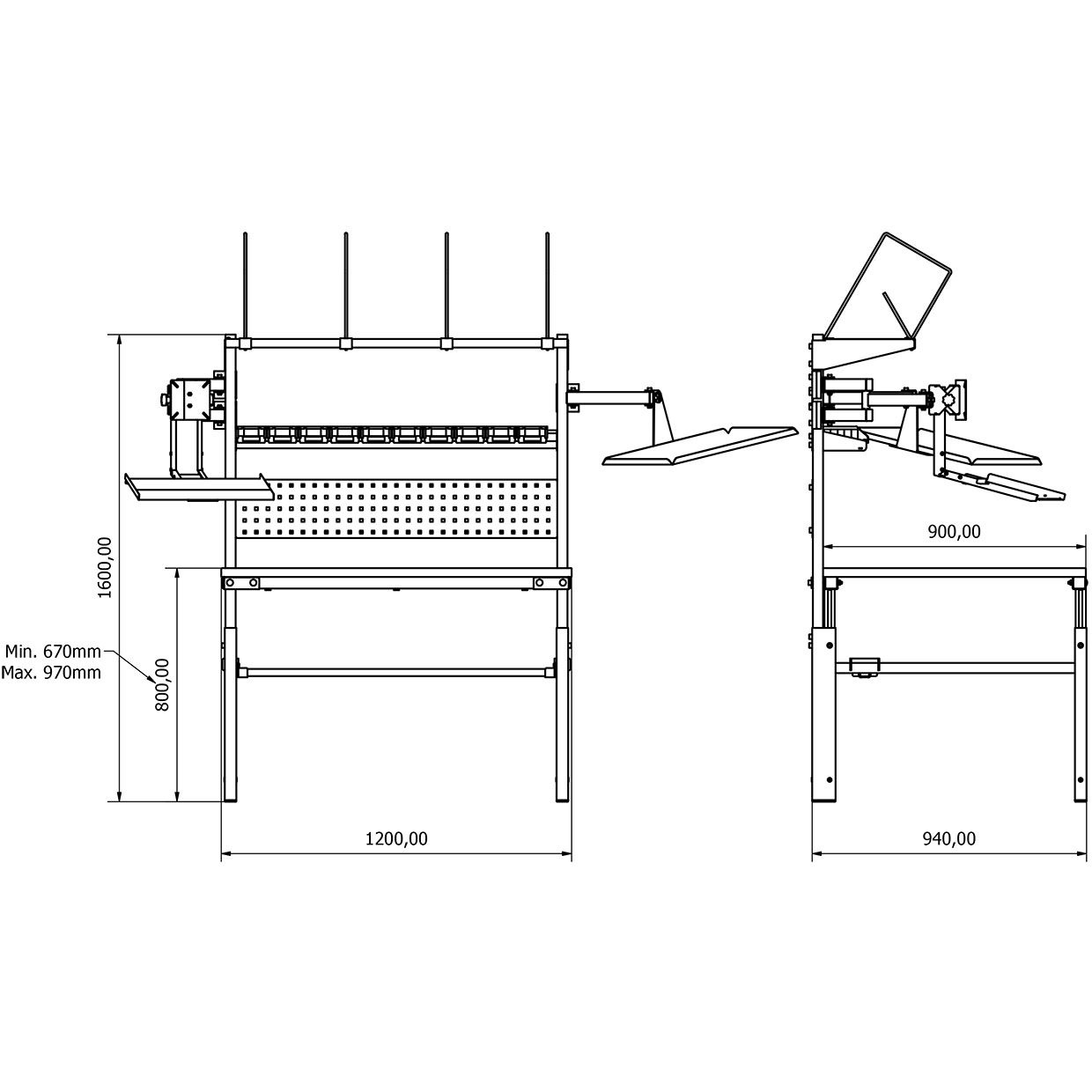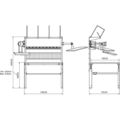 - Yükseklik Ayarı: Manuel olarak ayarlanabilir. Tabla yüksekliği zeminden 670 mm ile 970 mm arasında ayarlanabilir