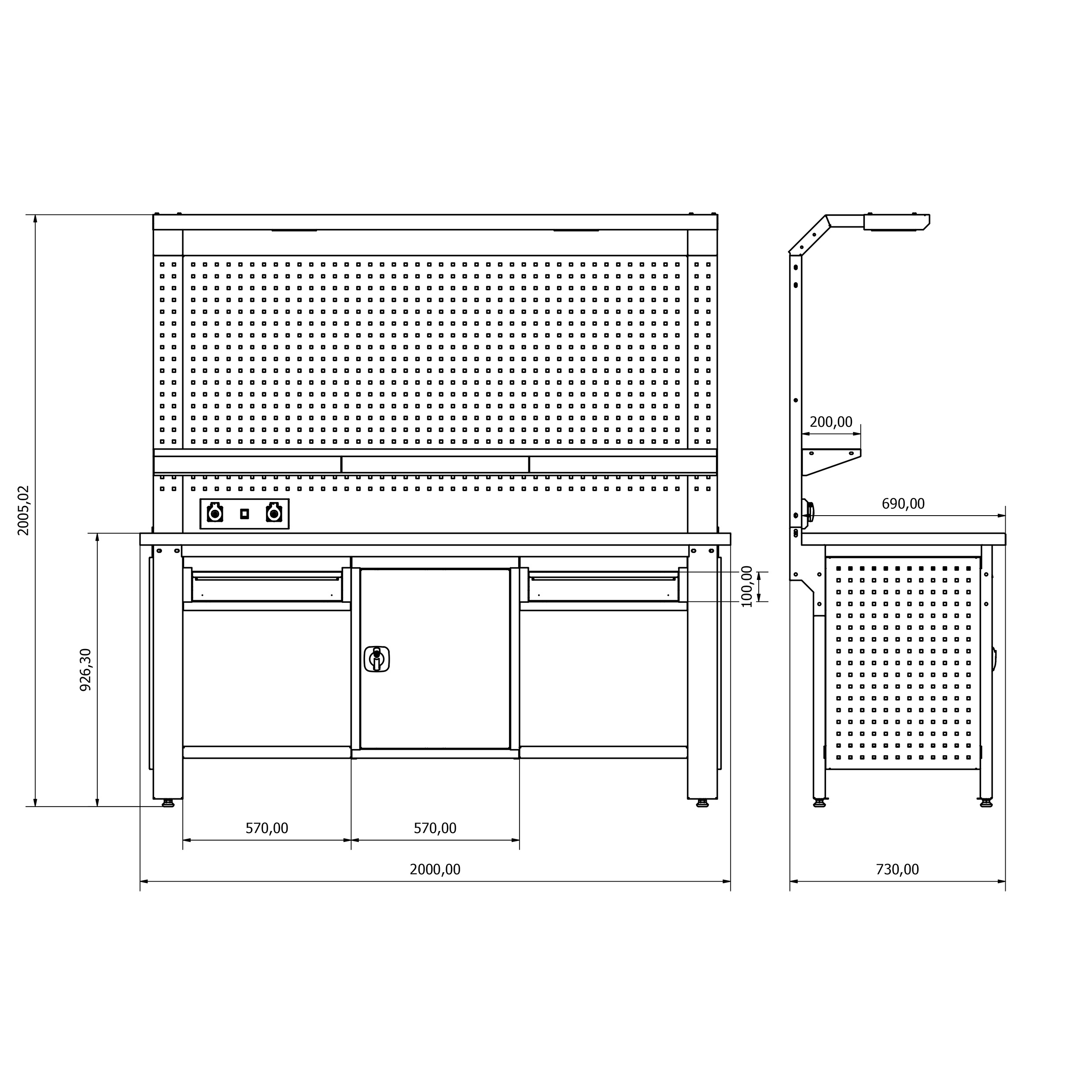 - H940xW1910 mm delikli pano ölçüsü