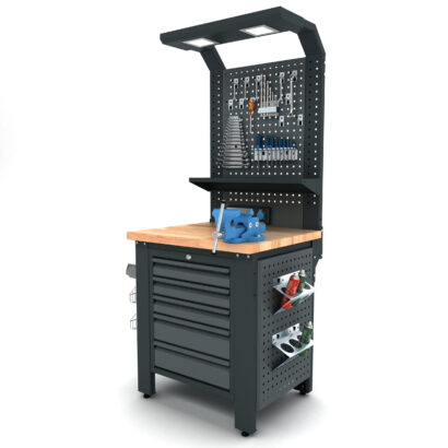 Proline Plus çalışma tezgahı, DKP ve HRP sac gövdesi ile uzun yıllar boyunca formunu korur. Elektrostatik toz boya kaplaması sayesinde çizilmelere, aşınmaya ve atölye koşullarına karşı yüksek direnç gösterir.
