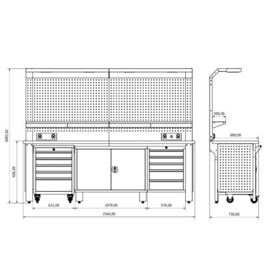- H2000xW2560xD730 mm boyutlarında