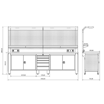 - H940xW2928 mm delikli pano ölçüsü