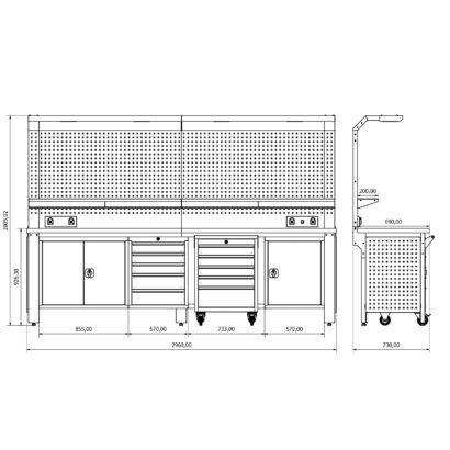 - H2000xW2960xD730 mm boyutlarında